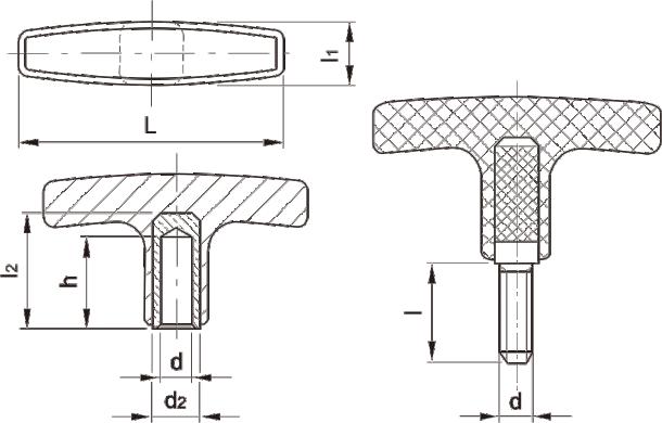 JS.102006 T型把手 顏色:啞光黑 材質(zhì):增強尼龍 用途:適用于各類機械裝備、五金工具、舞臺燈光設(shè)備等行業(yè) 特性:啞光飾面、外形美觀、機械強度高、堅固耐用、標準化使用、安裝簡便