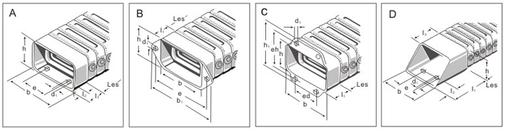 JS.106008 DGT型導(dǎo)管防護(hù)套 結(jié)構(gòu)制作與用途 護(hù)套是由外套板和內(nèi)部尼龍框架組合而成,套板采用不銹鋼板或冷軋鋼板拋光鍍鉻處理,內(nèi)部尼龍框架是由工程塑料增強(qiáng)尼龍66加纖維注塑而成,結(jié)構(gòu)合理,強(qiáng)度高、不變形、外型精美等優(yōu)點(diǎn)。 安裝方便,適用于各種機(jī)床、機(jī)械電器、液壓氣動管線的防護(hù)和裝飾美化主機(jī)整體造型,確保操作人員勞動安全,增強(qiáng)我國機(jī)床、機(jī)械設(shè)備在國際市場的競爭能力。 造型 注明規(guī)格與型號如下所示: (1)如1#1200-D-Ⅱ或25×45×1200-D-Ⅱ (2)如3#1800-AD-Ⅲ或45×90×1800-AD-Ⅲ
